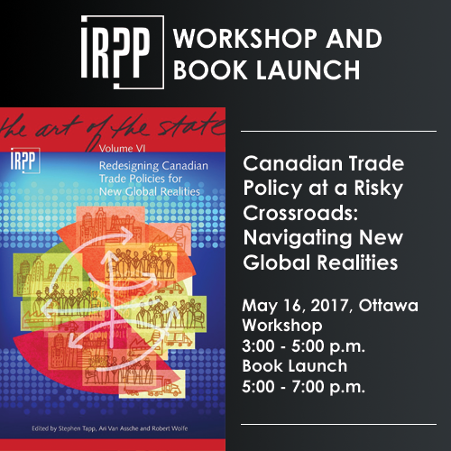 At this event, the Institute for Research on Public Policy (IRPP) released the results of a multiyear, interdisciplinary research initiative. Our volume, Redesigning Canadian Trade Policies for New Global Realities, brings together the contributions of more than 30 experts from eight different countries. They analyze how structural changes and emerging trends in international commerce, technology and economic power are affecting Canada, and what these changes mean for public policy.
